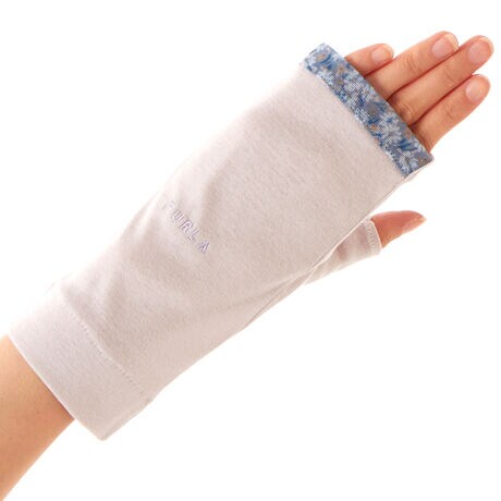 [型番:FRU2591036]紫外線防止UVカット手袋(ロゴ刺?/花柄プリントデザイン)・指無しショート丈
