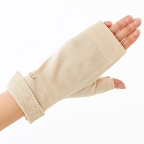 [型番:FRU2591638]紫外線防止UVカット手袋(ロゴ刺?/アーチモチーフプリントデザイン)・指無しショート丈