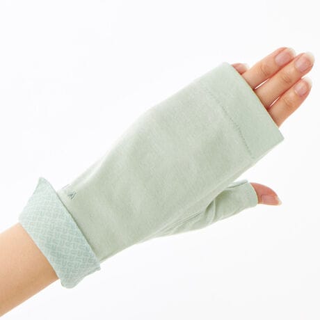 [型番:FRU2591638]紫外線防止UVカット手袋(ロゴ刺?/アーチモチーフプリントデザイン)・指無しショート丈
