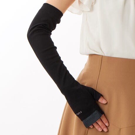 [型番:FRU2591846]紫外線防止UVカット手袋(ロゴ刺?/アーチモチーフプリントデザイン)・指無しロング丈