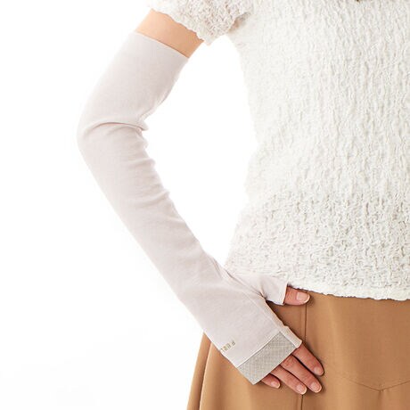 [型番:FRU2591846]紫外線防止UVカット手袋(ロゴ刺?/アーチモチーフプリントデザイン)・指無しロング丈