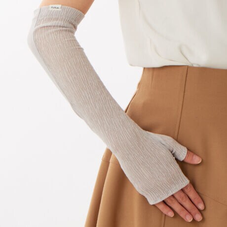 [型番:FRU2592744]紫外線防止UVカット手袋(ピスネームロゴデザイン)・指無しミドル丈