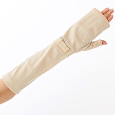 [型番:FRU2593840]紫外線防止UVカット手袋(ロゴ刺?/リボンデザイン)・指無しミドル丈