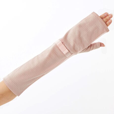 [型番:FRU2593840]紫外線防止UVカット手袋(ロゴ刺?/リボンデザイン)・指無しミドル丈