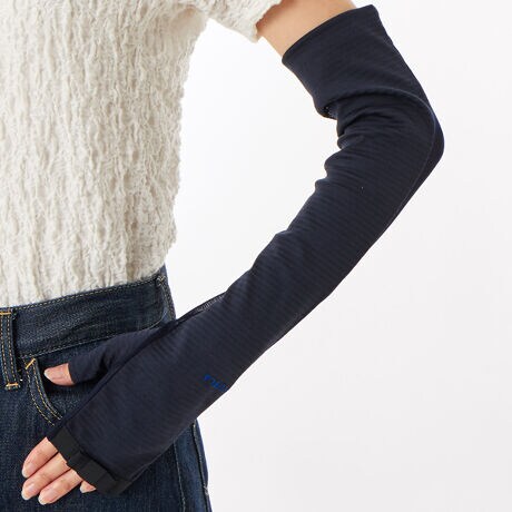 [型番:FRU2593945]紫外線防止UVカット手袋(ロゴ刺?/リボンデザイン)・指無しロング丈