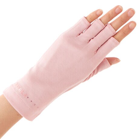 [型番:FRU2594342]紫外線防止UVカット手袋(ロゴ刺?デザイン)・指切りショート丈・接触冷感