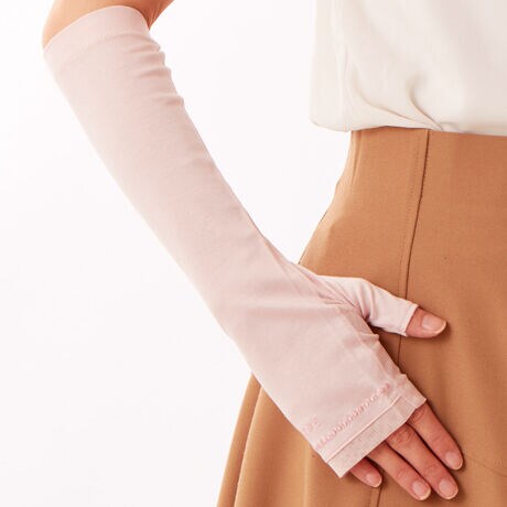 [型番:FRU2495050]紫外線防止UVカット手袋(ロゴ・ドット刺?デザイン)・指無しミドル丈・接触冷感