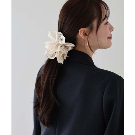 大きめで存在感のあるコットン素材のレースを使用したシュシュ。