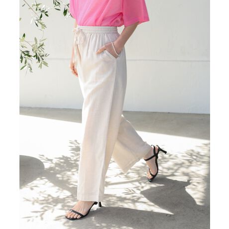 ナチュラルな風合いでラフな雰囲気を演出するシンプルデザイン。すとんとしたストレートシルエットが、レッグラインをすっきりと見せてくれます。ウエストはバックゴム仕様になっているので、ストレスフリーな穿き心地も嬉しいポイントです。