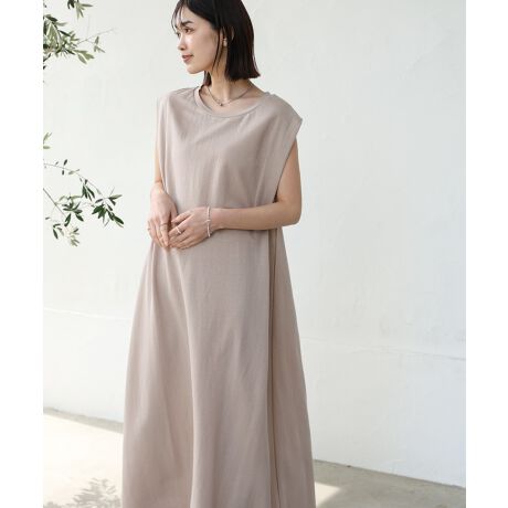 カノコ生地を使用したさらっとドライタッチなワンピース。Aラインシルエットで女性らしくカジュアルになりすぎないシンプルワンピ。身頃AH側のタックが立体感があり、シンプルながらサマになるデザイン。身長の低い方でもぺたんこ靴で着られる丈感にもこだわりました。