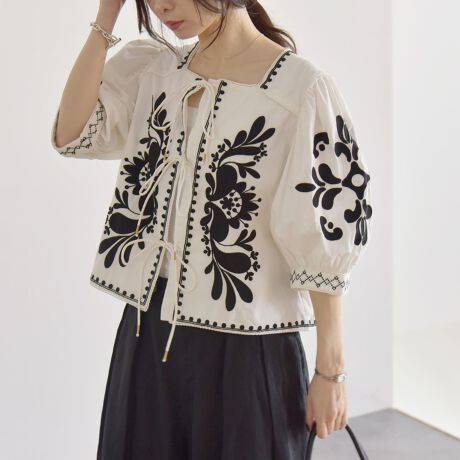 大胆な刺繍がポイントのフォークロア調のブラウス。
