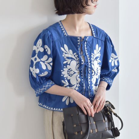 大胆な刺繍がポイントのフォークロア調のブラウス。