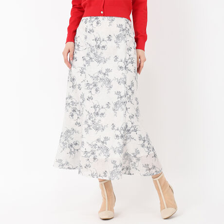 緻密に描かれたフラワージュイ柄がエレガントなムードを纏うマーメイドスカート。優美な裾フレアのシルエットとバックのレースアップがレディライクな印象を演出。お仕事やデート、休日のお出かけスタイルなどの様々なシーンにも活躍してくれる上品で華やかなアイテムです。