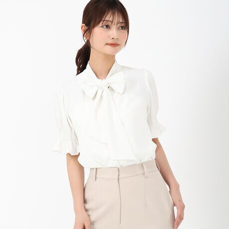 ボウタイが上品に映える、ふんわりスリーブブラウス