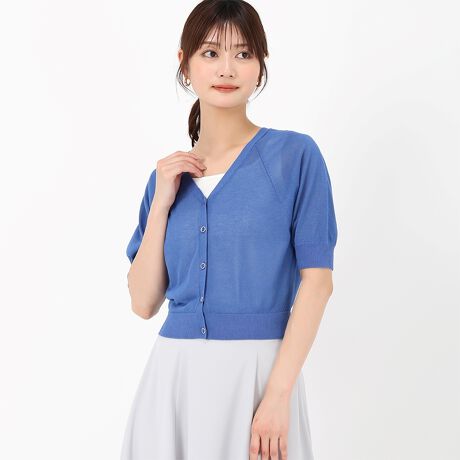 ふんわり丸みのあるパフスリーブが、女性らしいやさしい雰囲気を演出するシアーカーディガン。