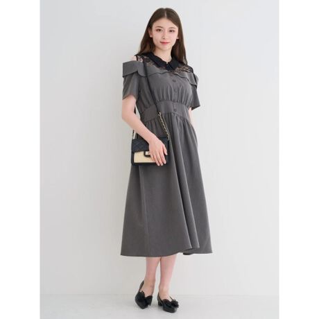 【WEB限定】レースオフショルドッキングワンピース