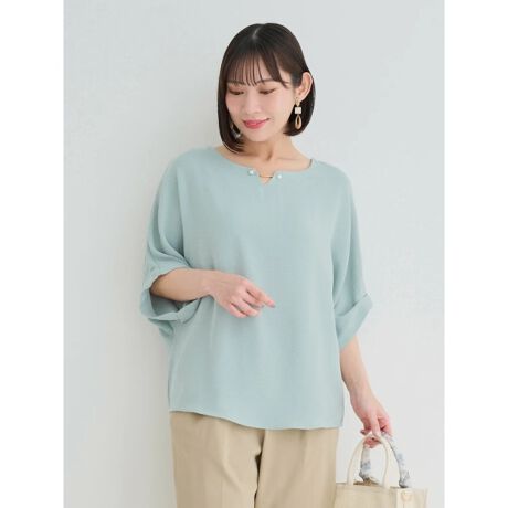 【接触冷感】パールアクセサリー付きドルマンントップス