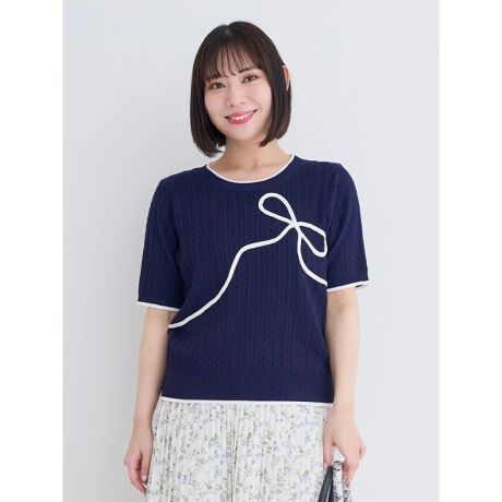 5分袖リボン刺繍トップス