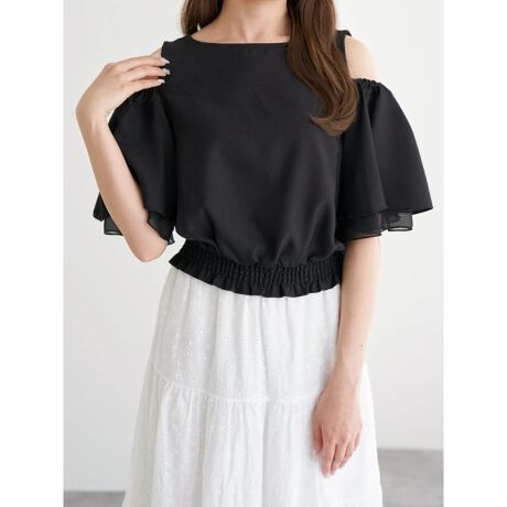 肩開きフレアスリーブトップス
