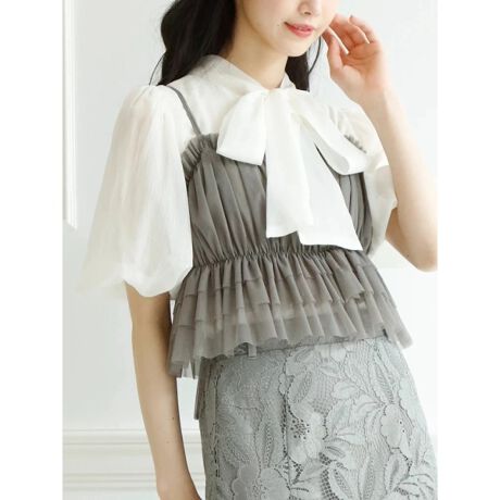 ・ふわふわのボリューミーなチュールと後ろリボンが可愛らしいビスチェ。