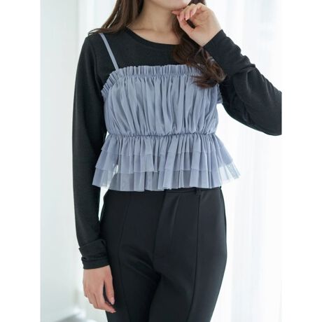 ・ふわふわのボリューミーなチュールと後ろリボンが可愛らしいビスチェ。