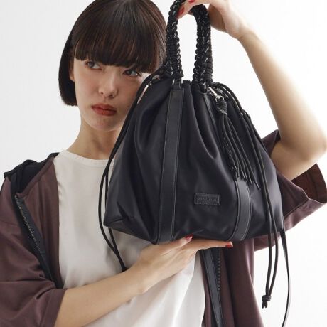 本体口を絞ると「巾着型」・絞らないと「トート型」として使用していただけます。