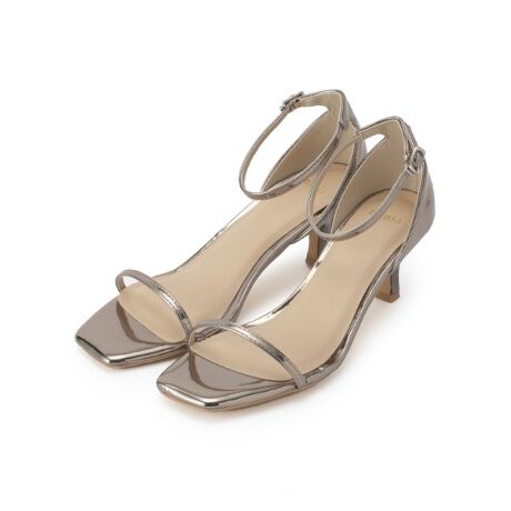 メタリックな素材感が特徴的な細ストラップデザインサンダル。