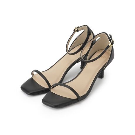 メタリックな素材感が特徴的な細ストラップデザインサンダル。