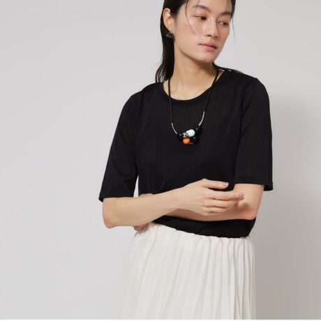 華やかな印象のラメ素材をシンプルなTシャツに仕立てた、上品なカジュアル感が魅力です。