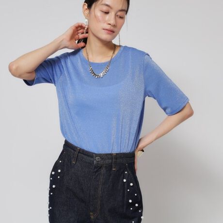 華やかな印象のラメ素材をシンプルなTシャツに仕立てた、上品なカジュアル感が魅力です。