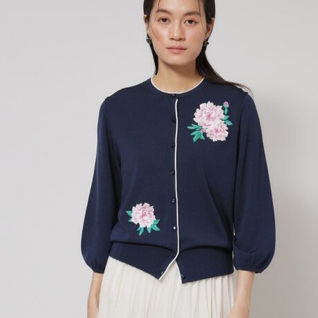 色使いの繊細な機械刺繍がSunaUnaらしいオリエンタルなムードのニットカーディガン。