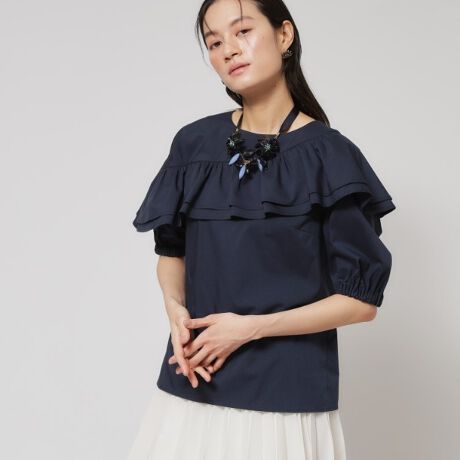 アシンメトリーなバランスで配したラッフルで、モードな印象に仕上げました。