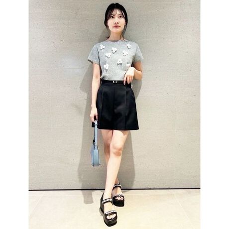 短すぎない丈がどんなアイテムとも合わせやすく、絶妙なバランスで脚を長く細見えさせてくれる1着です。