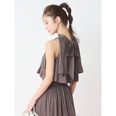 ホルターネックのような襟ぐりで一段目のフリルが脇を程よくカバーしてくれます。