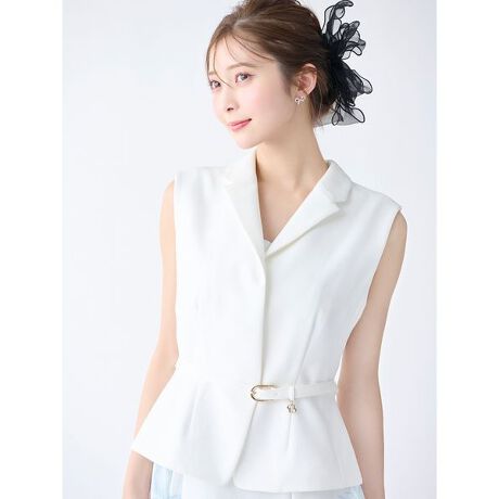 細幅の共地ベルトで上品に仕上げたペプラムジレは、CELFORDらしくモードでエレガントなアイテムに落とし込みました。