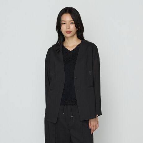 また、ワンピースやデニム等と合わせてカジュアルに着崩して着ることはもちろん、シアーボイルジレ(商品番号:34-05VK07-205)シアーボイルスカート(商品番号:34-05FK06-205)とも色を合わせて作っているので、クロスコーディーネートとしてもお楽しみください。