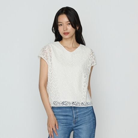 〔 TALLサイズ 〕 リーフ柄ラッセルレース ブラウス