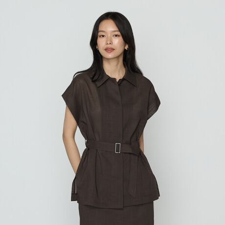 太めの比翼デザインと太めの共ベルト付きで、ジャケットを着なくてもきちんと見える、この時期丁度良いジレです。