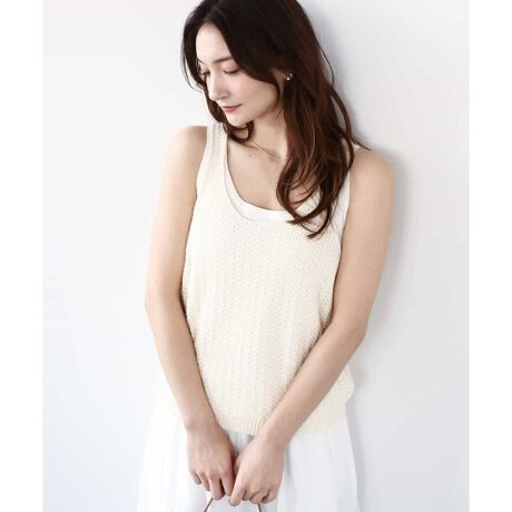 タック編みが大人可愛いニットタンクトップ