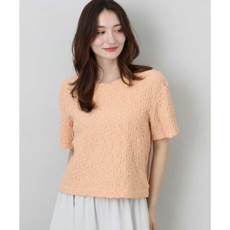ポコポコとした表面感のカットソーは体の肉感を拾いにくく体型カバーが叶う一枚!見た目的にも可愛いデザインなので1枚着でも映えるアイテムです。ストレッチが効いているので着脱もラクチンでした。