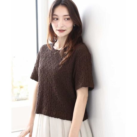 ポコポコとした表面感のカットソーは体の肉感を拾いにくく体型カバーが叶う一枚!見た目的にも可愛いデザインなので1枚着でも映えるアイテムです。ストレッチが効いているので着脱もラクチンでした。