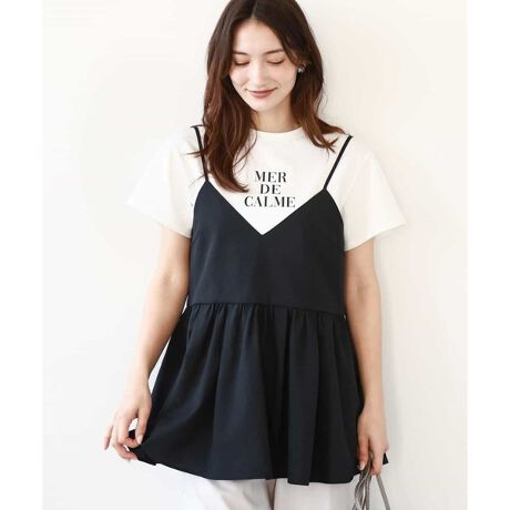 麻のようなナチュラルな風合いですが、ポリエステルなのでシワにもなりにくく、取り扱いしやすいキャミビスチェです。 ウエストのギャザーが気になるお腹まわりをふんわりカバーしてくれます。 インナー次第で長い季節着用できて、普段のコーディネートをアップデートしてくれます。