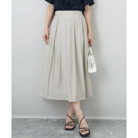 素材の軽さと程よいフレア感が大人の印象で着こなせるスカート。ウエストにはタックを入れているので、気になるお腹周りもカバーしてくれます。裾に透け感があるので、動くたびに軽やかな雰囲気を演出してくれます。