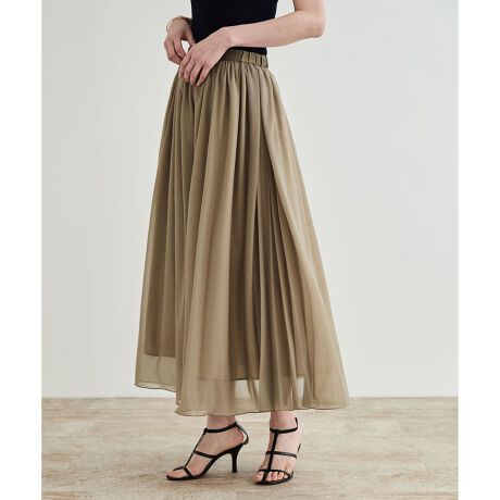 ゴムウエストのギャザースカートは、脇にプリーツが入っているので、歩くたびに表情が変わるのが魅力。きちんとしたシーンにもおすすめで、オンオフ問わず着れて、気負わず日常にフィットしてくれる大人フェミニンなアイテムです。