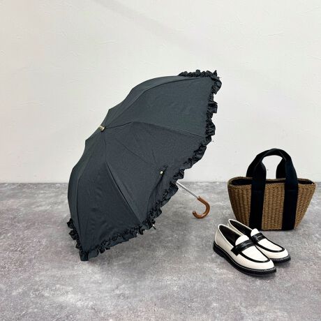 【UVカット/晴雨兼用】フリル折りたたみUVカット傘