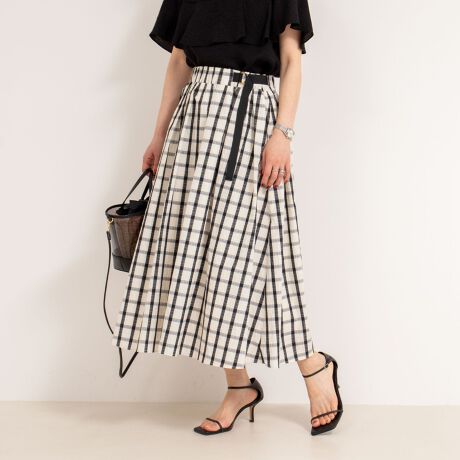 ・程よいハリ感のあるタフタ素材を使用した上品なフレアスカート
