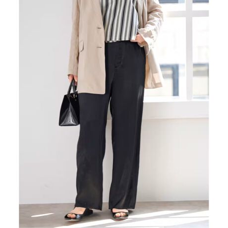 美しいドレープ感が特徴のサテンパンツ。