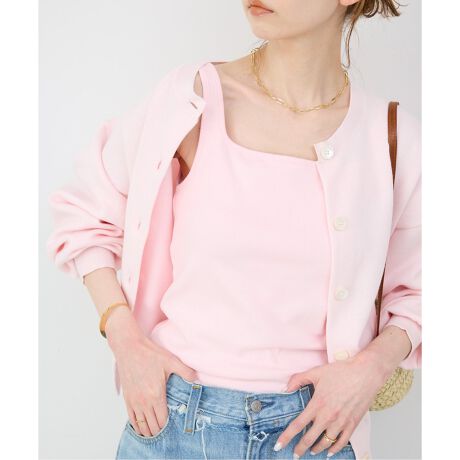 カジュアル過ぎない見え感に仕上げたスクエアネックが特徴のカップ付きタンクトップ。