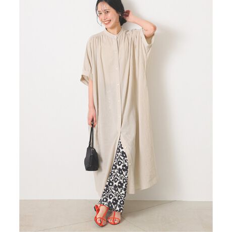 バンドカラーワンピース。