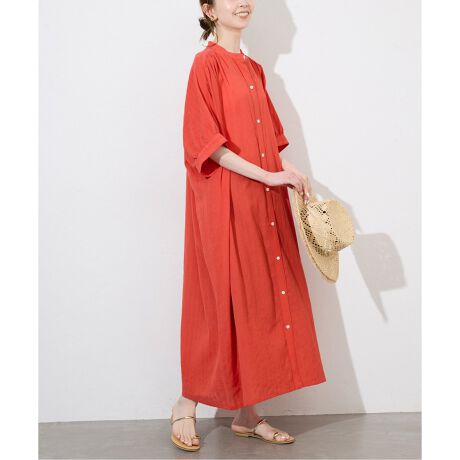 バンドカラーワンピース。